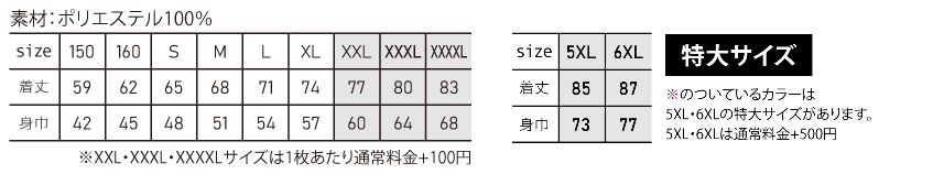 ※プリント場所を増やしたり色数を増やす場合は1箇所1色増えるごとに上記追加料金をたしてください。