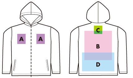 ※プリント場所を増やしたり色数を増やす場合は1箇所1色増えるごとに上記追加料金をたしてください。