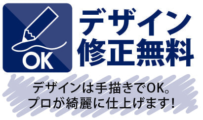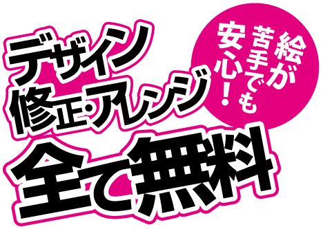 ※デザイン製作に関しては全て無料ですが、お客様理由による度重なる大幅な変更には、別途修正代を頂く場合もございます。