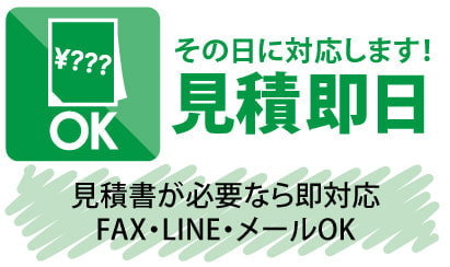 ※お問い合わせ頂いた時間によっては翌営業日の対応になります。お急ぎの場合は営業時間内にお電話ください。