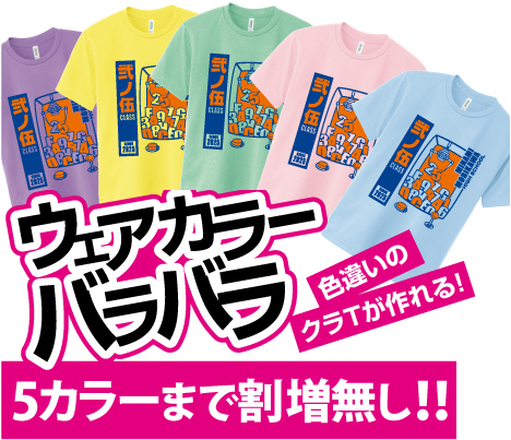 ※20枚以上のご注文で、デザインが共通ならウェアカラーが5カラーまで割増無しで作れます。ウェア6カラー目以降には1カラー追加毎に+200円(合計金額に)です。