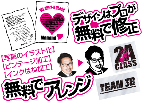 ※ビンテージ加工・インクはね加工は、デザインを描いた紙に「ここをビンテージ」のように指定してください。