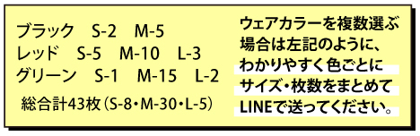 ※背ネーム・背番号を入れる場合はウェアは2カラーまで。