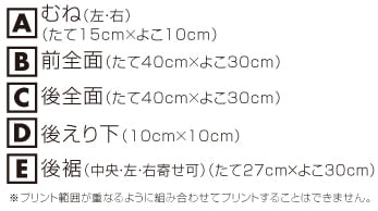 ※プリント場所を増やしたり色数を増やす場合は1箇所1色増えるごとに上記追加料金をたしてください。