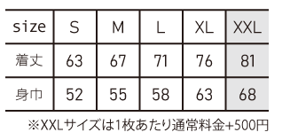 ※プリント場所を増やしたり色数を増やす場合は1箇所1色増えるごとに上記追加料金をたしてください。