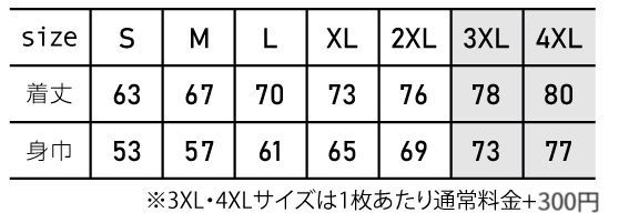 ※プリント場所を増やしたり色数を増やす場合は1箇所1色増えるごとに上記追加料金をたしてください。
