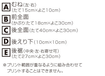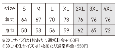 ※プリント場所を増やしたり色数を増やす場合は1箇所1色増えるごとに上記追加料金をたしてください。