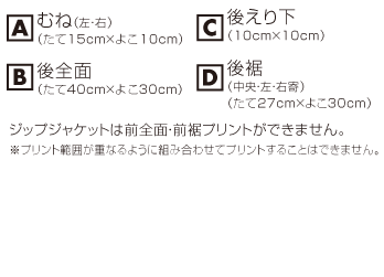 ※プリント場所を増やしたり色数を増やす場合は1箇所1色増えるごとに上記追加料金をたしてください。