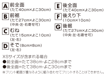 ※プリント場所を増やしたり色数を増やす場合は1箇所1色増えるごとに上記追加料金をたしてください。